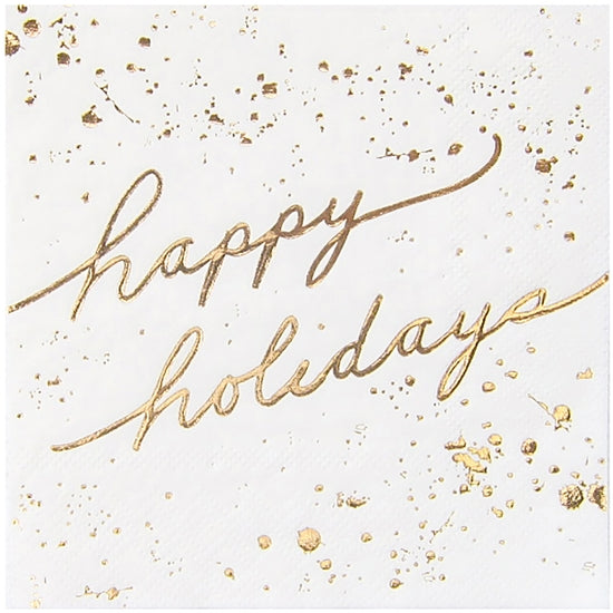 White & Gold Happy Holidays Cocktail Paper Napkins